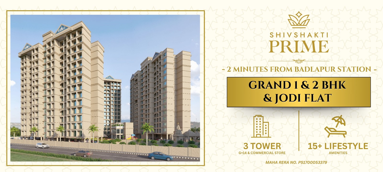 Shivshakti Prime Is A Beautiful Residential cum Commercial Project by Shivshakti Group Who Are One of The Renowned Developers in Mumbai Suburbs. It Is Located in Badlapur West and Well Connected by Major Places. Luxurious 1,2 Bhk & Jodi Flats Option Available and with All Necessities Are Available in The Project.